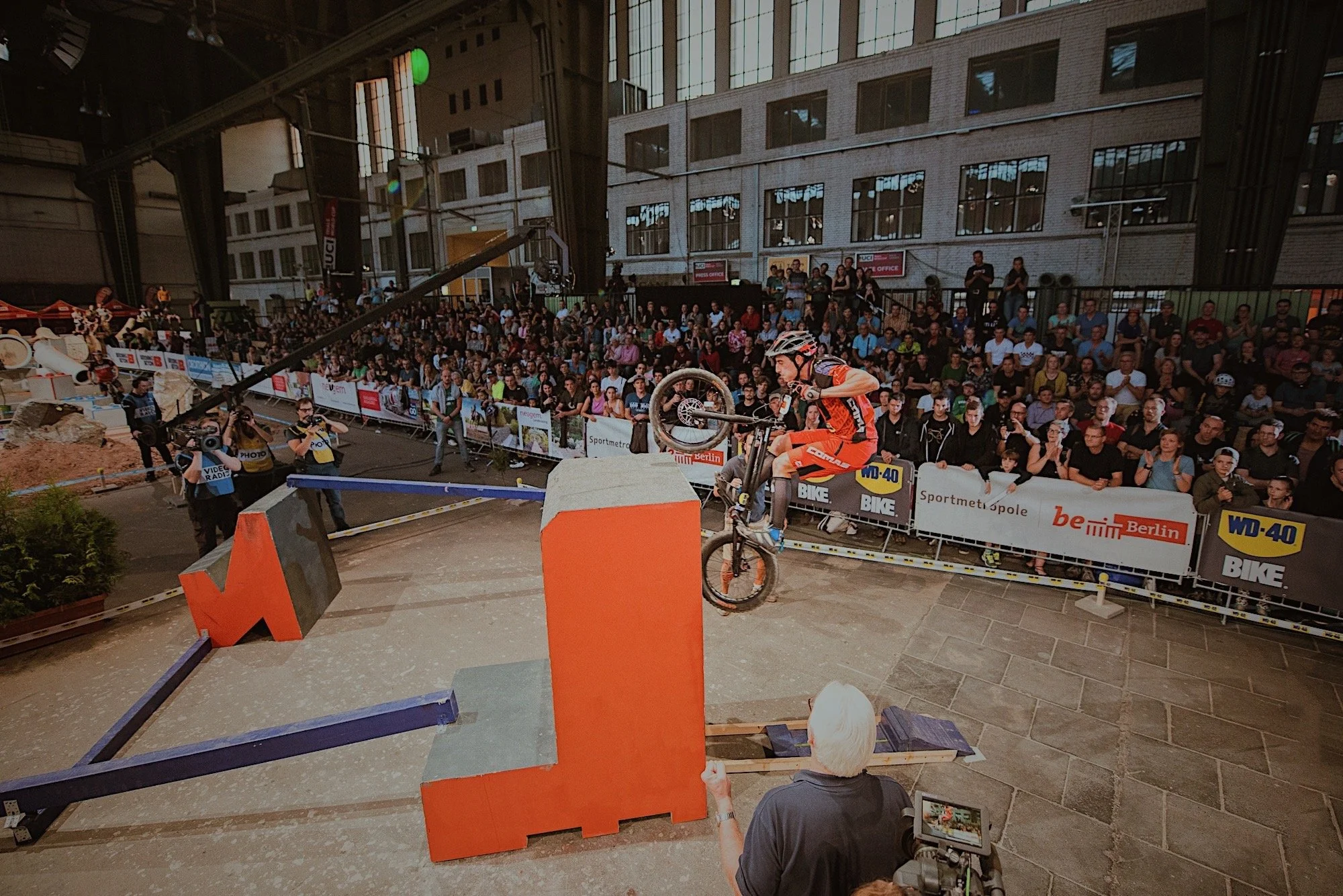 The competition took place at the old Berlin airport, which gave it a unique and interesting backdrop. The stands were filled with fans who were really enjoying the event, cheering as the riders tackled the sections. It was great to have that support from the crowd while riding such amazing sections.
